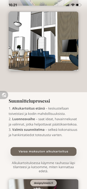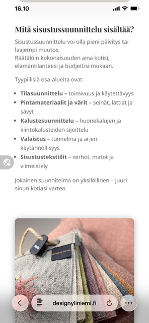 Design Yliniemen verkkosivusto toimii esimerkkinä tästä työstä. Olen rakentanut ja kehittänyt sivustoa määrätietoisesti usean vuoden ajan.